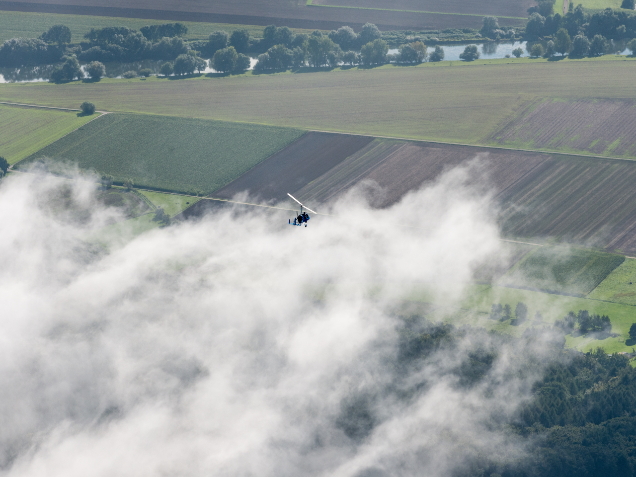 Die Bandbreite des Fliegens in einem Gyrocopter ist enorm. Man kann mit 30km/h langsam dahinschweben oder mit eine Reisegeschwindigkeit von über 140km/h über die Landschaft sausen.